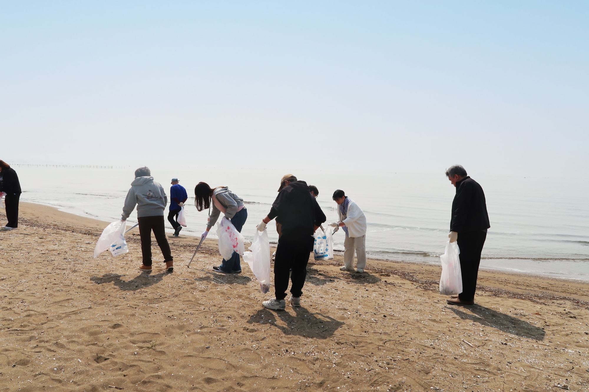 現在、応援活動のひとつとして当社社員で地域や海周辺の清掃活動(海ごみゼロ活動)を行っています。