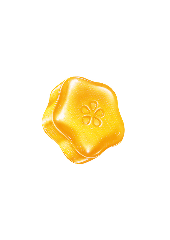 ・当社独自の特殊製法(天然液状物の固形化物およびその製造方法)を用いて固めています。